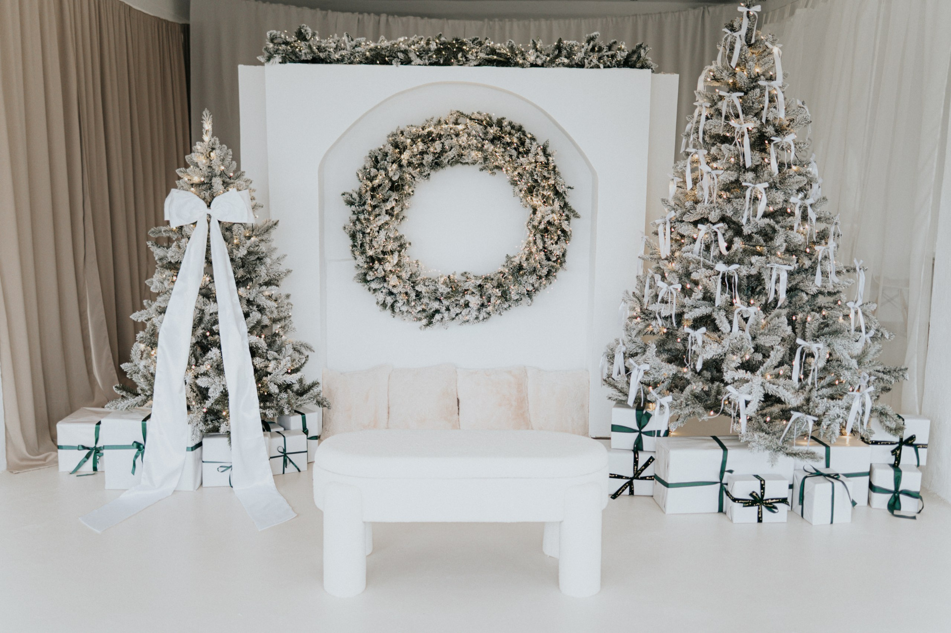 Pokud jste v Light Studiu ještě nebyli - je to prostorný ateliér s rozlohou 200 m2. Scény budou letos 4, včetně jedné speciálně pro děti. Hlavní vánoční scéna v bílé se stromečky a obřím věncem, zasněžený domeček, kam se vleze pohodlně celá rodinka, a kouzelný koutek se stánkem "horká čokoláda", který určitě nadchne všechny děti! Poslední tvoří minimalistická scéna s velkou červenou mašlí, kterou lze ale v případě potřeba oddělat a vytvořit tak i nevánoční sérii fotek.